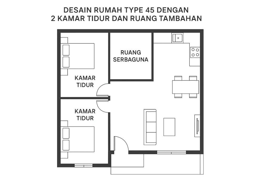 Rumah Type 45 dengan 2 Kamar Tidur dan Ruang Serbaguna