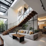 Bagian bawah tangga (sofit) ditutup dengan gipsum atau panel kayu yang rapi.