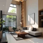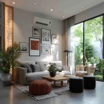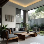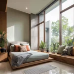Penempatan furniture rendah seperti daybed atau kursi baca ikonik di dekat jendela.