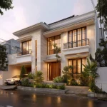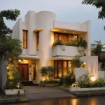 Jendela berbentuk busur menjadi focal point. Bingkai jendela menggunakan warna-warna berani seperti champagne gold, hitam pekat, atau perunggu.