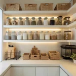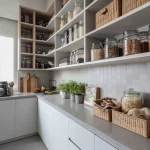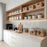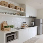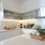 Singkirkan barang yang jarang dipakai (seperti pembuat roti atau blender besar) dari meja dapur. Gunakan sistem kabinet full-height untuk memaksimalkan ruang simpan.