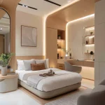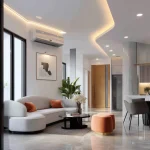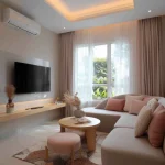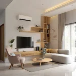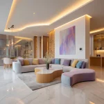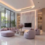 Furnitur multifungsi tetap ada, namun bentuknya lebih organik. Meja dengan sudut membulat dan sofa yang mengikuti lekuk tubuh menjadi primadona.