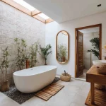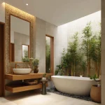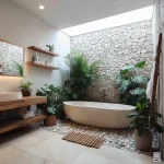 Gunakan cove lighting di cermin atau plafon supaya ruangan kelihatan lebih mewah. Biar makin hidup, taruh tanaman indoor yang tahan lembap di sudut wastafel atau area shower.