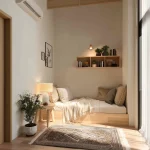 Sentuhan material kayu dan kain alami memberikan kehangatan psikologis yang membantu otot lebih cepat rileks.