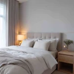 Gunakan panel dinding empuk tepat di belakang tempat tidur biar kamar tidak berisik.