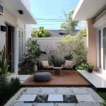 Pasang pintu geser kaca yang lebar supaya taman langsung kelihatan dari dalam.
