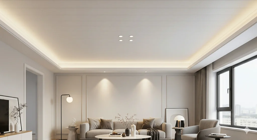 5. Plafon PVC dengan Pencahayaan Tersembunyi (Indirect Lighting)