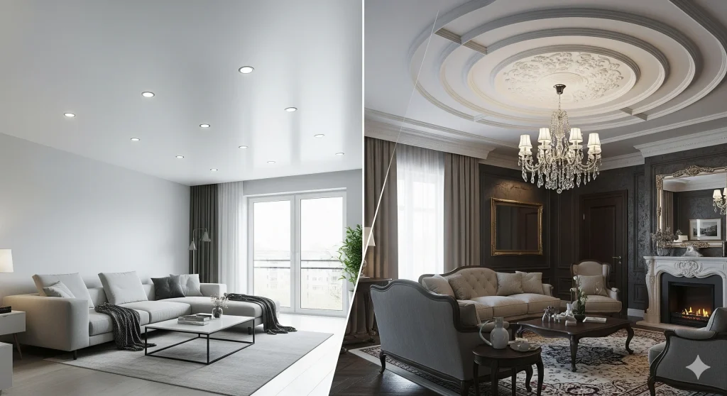 Plafon gypsum sering dipilih karena fleksibilitas desainnya, terutama untuk bentuk plafon bertingkat atau ornamen dekoratif. Sementara itu, plafon PVC tersedia dalam beragam warna dan motif cetakan, tetapi umumnya terbatas pada bentuk panel sederhana. Dengan demikian, gypsum lebih unggul untuk proyek yang menekankan aspek artistik, sedangkan PVC lebih sesuai untuk desain minimalis dan modern.